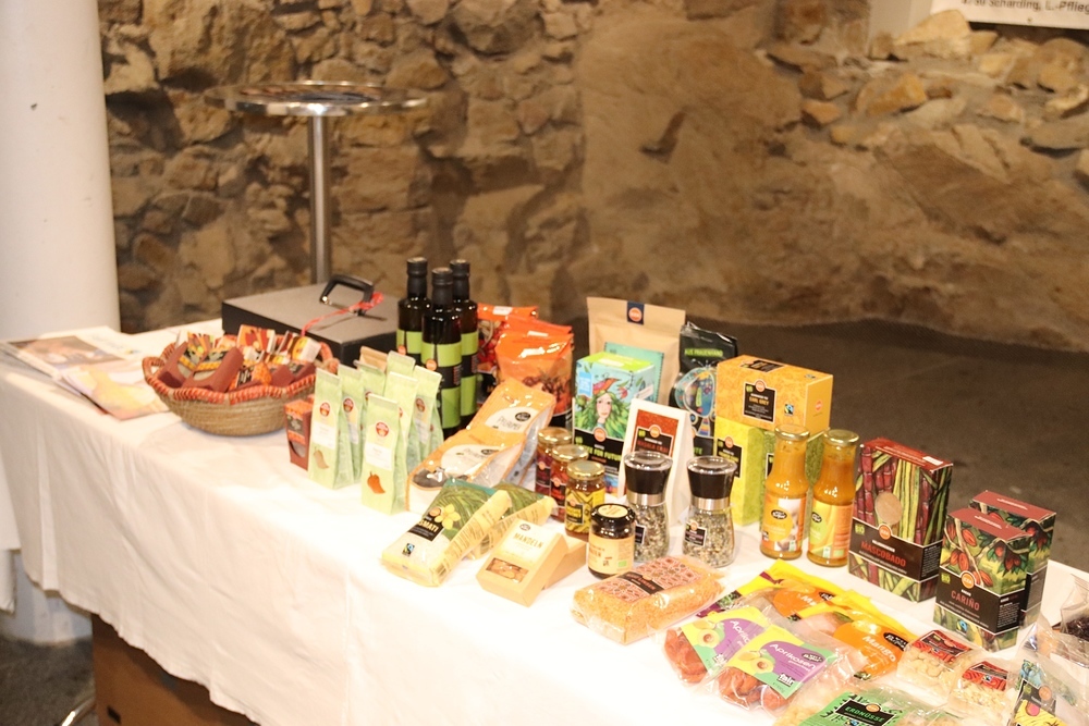 SchülerInnen und Eltern der Neuen Mittelschule Schärding boten in der Pause Kostproben aus ihrem internationalen Kochbuch an. Köstlichkeiten aus Fairem Handel gab es vom Weltladen Schärding.